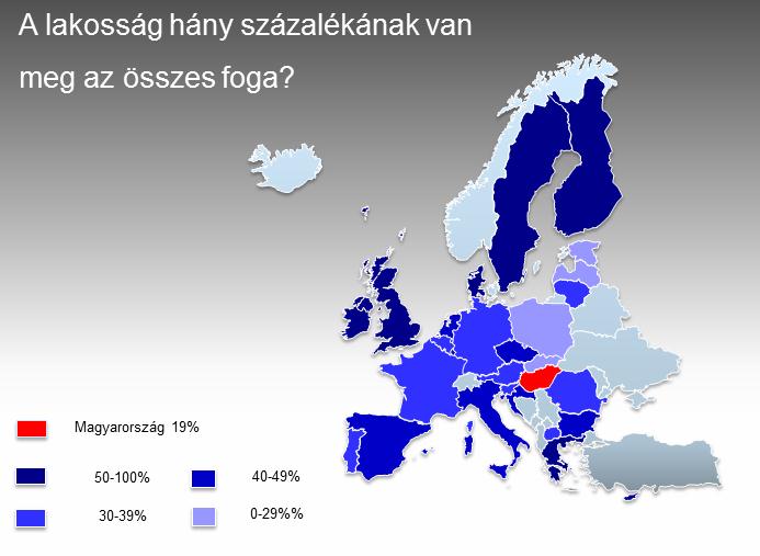 65 éven felüliek fogatlanságának az Egészségügyi Világszervezet ajánlásai szerint 25% alatt kellene lennie, míg ez Magyarországon 50% feletti. A megállapítás szerint a lakosság általában nem fordított elegendő figyelmet a fogápolásra, szájhigiénére, az ellátás korábbi teljes ingyenessége torz értékrendet hozott létre, nem vált értékké a fogazat megőrzése.