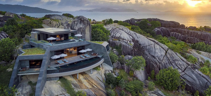 Négy nyaraló bújik meg a gránit-kiszögellések között a Seychelles-szigeteken, melyet egy londoni építészstúdió tervezett. Pazar kilátással és igazán egyedi élménnyel szolgál.